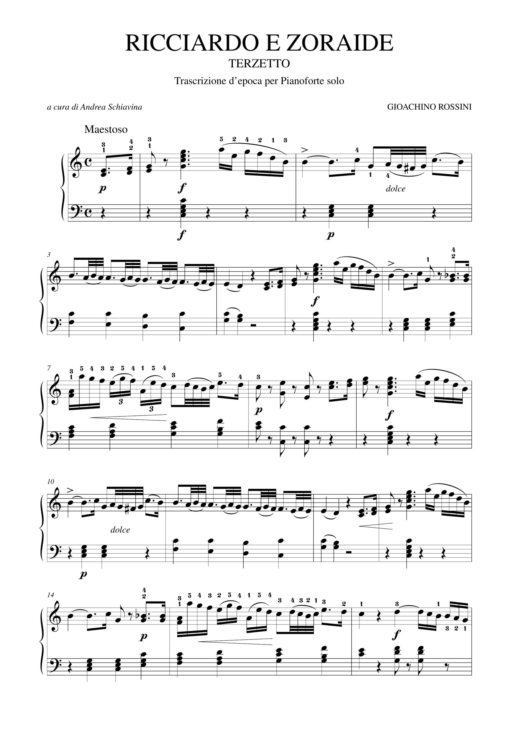 Rossini, Gioachino: Ricciardo e Zoraide. Terzetto. Trascrizione d’epoca per Pianoforte solo