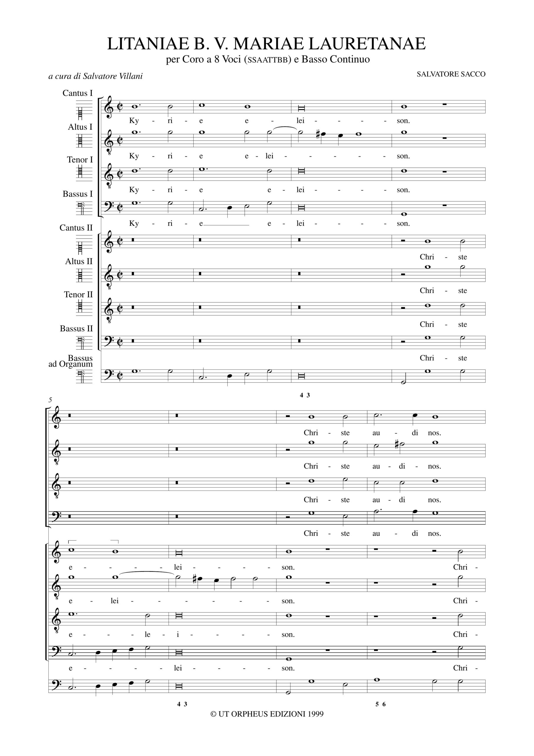 Sacco, Salvatore: Litaniae B.V. Mariae Lauretanae (Roma 1607) per Coro a 8 voci (SATB-SATB) e Basso Continuo [Partitura]