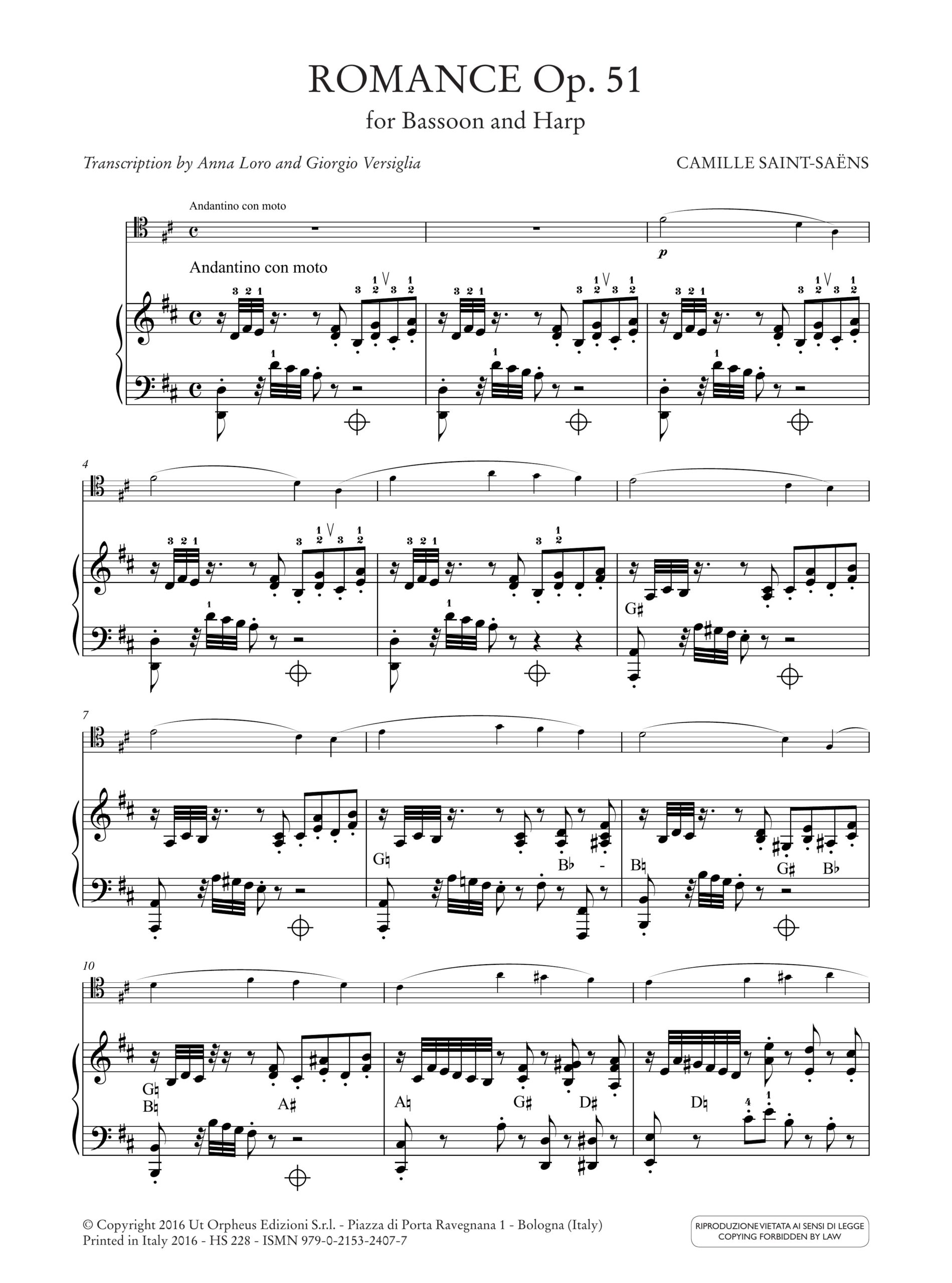 Saint-Saëns, Camille: Romance Op. 51 per Fagotto e Arpa
