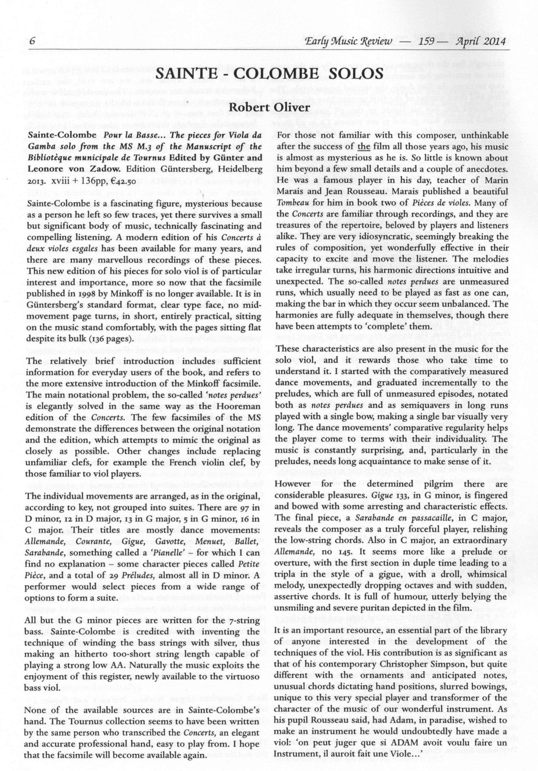 Sainte-Colombe, Pour la Basse, VdG, Vorwort und Solostimme, 160 S., ISMN 979-0-50174-231-8