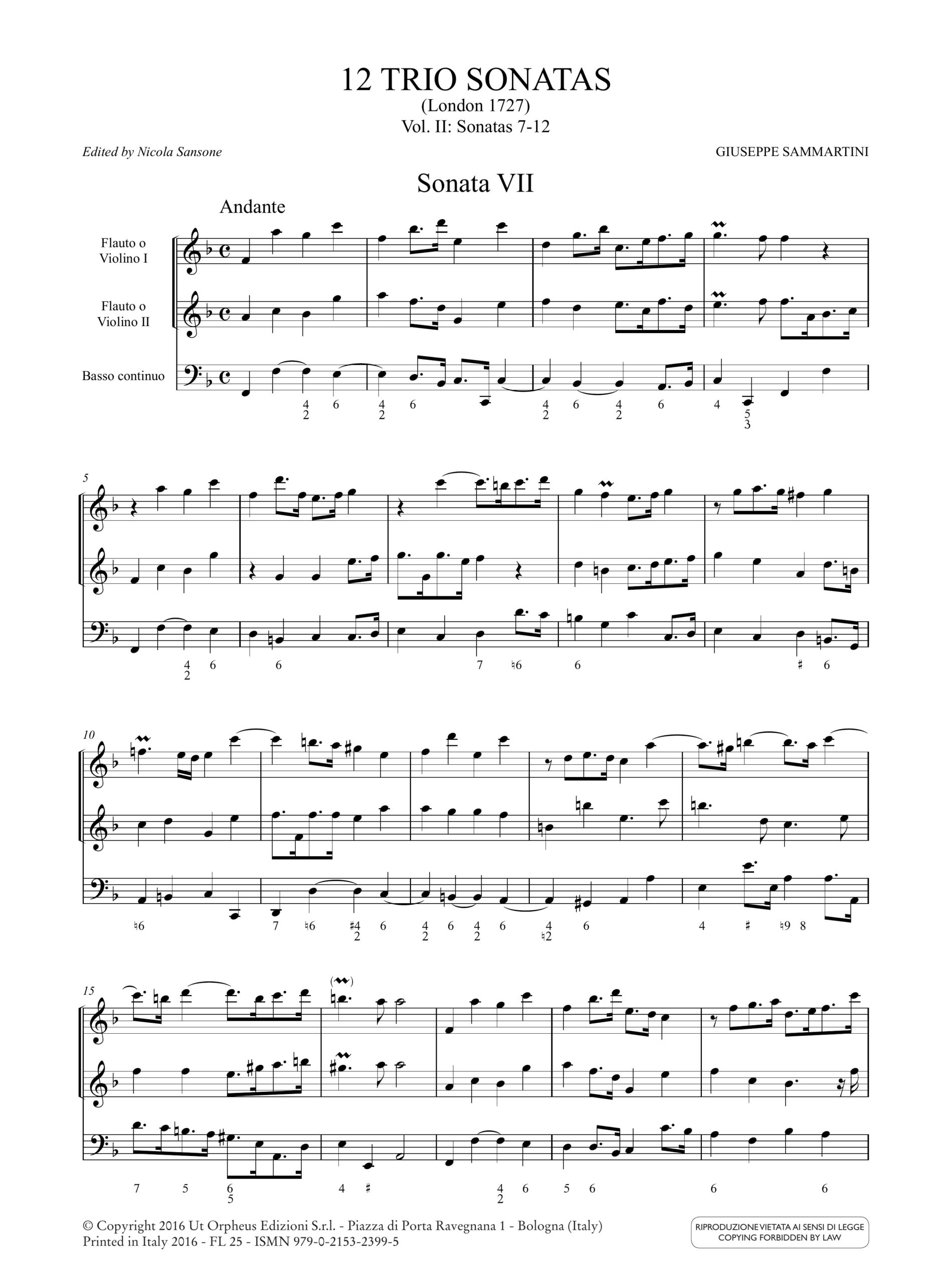 Sammartini, Giuseppe: 12 Triosonate (London 1727) per 2 Flauti Dolci Contralti (2 Violini) e Basso Continuo – Vol. 2: Sonate VII-XII