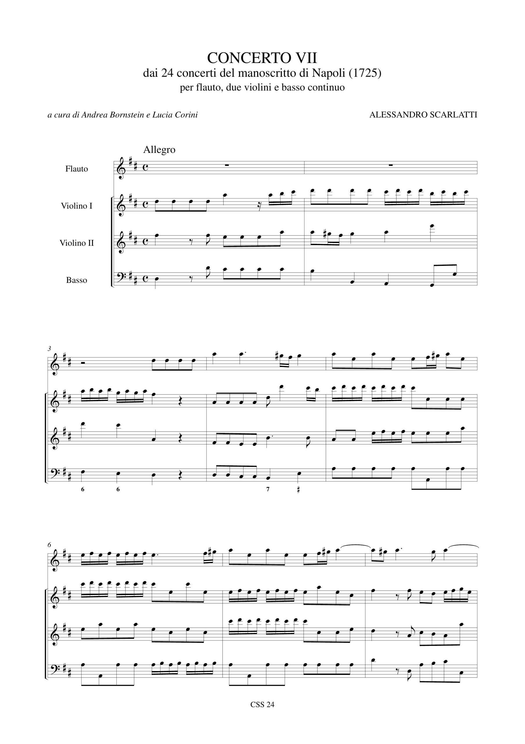 Scarlatti, Alessandro: Concerto VII dai 24 Concerti del manoscritto di Napoli (1725) per Flauto, 2 Violini e Basso Continuo