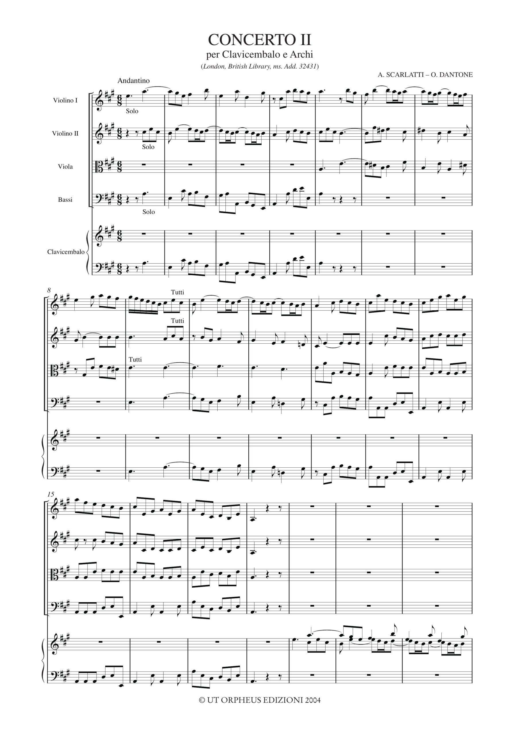 Scarlatti, Alessandro – Dantone, Ottavio: Concerto II (London, British Library, ms. Add. 32431) per Clavicembalo e Archi [Partitura]