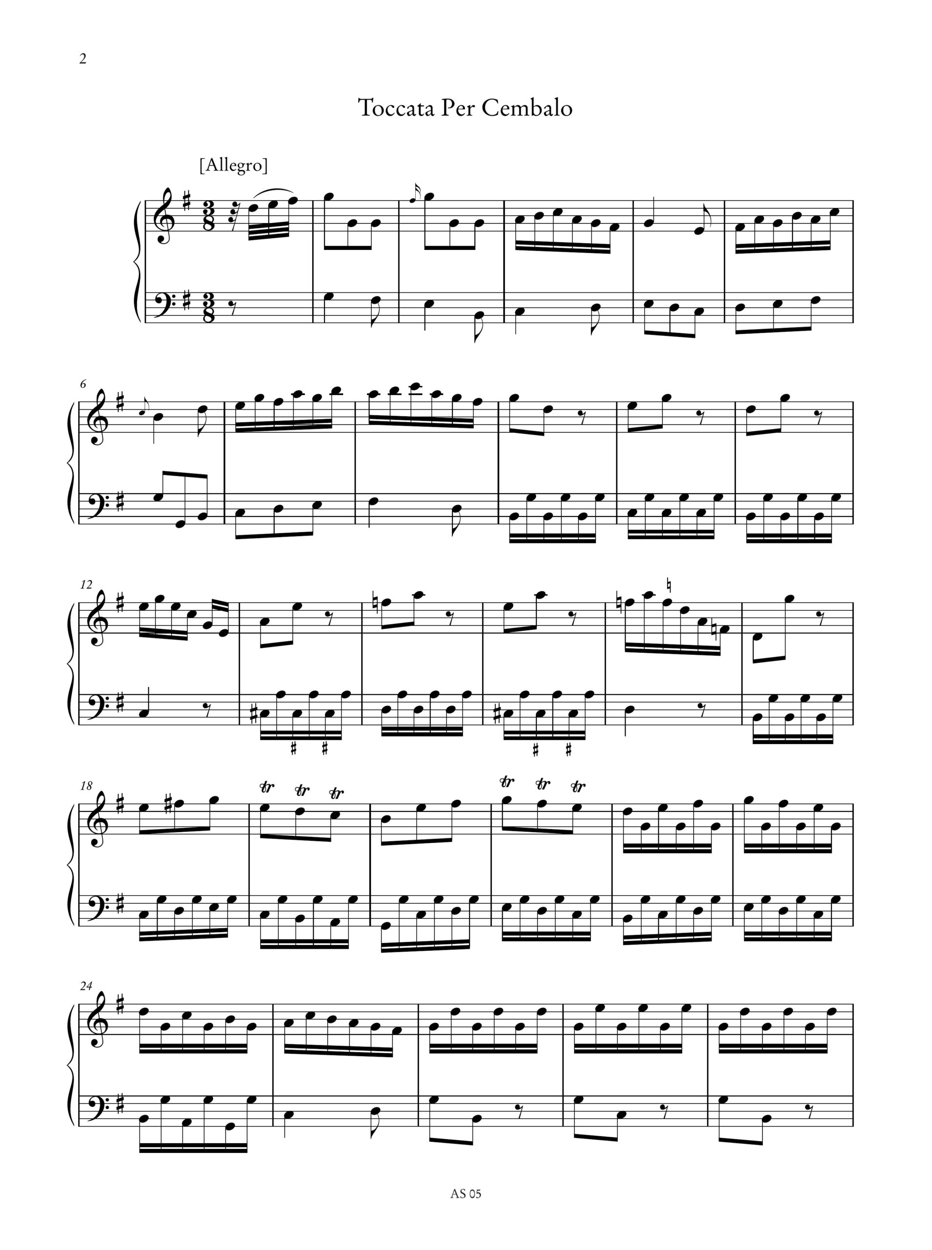 Autore: Alessandro Scarlatti (1660-1725) Curatore : Andrea Macinanti, Francesco Tasini Data pubblicazione : 30/3/2009 Collana : Alessandro Scarlatti – Opera Omnia per strumento a tastiera Pagine : pp. 224 Formato : 235×315 mm Rilegatura : Brossura (copertina morbida) ISMN : 979-0-2153-1607-2 Codice : AS 5 | Curatore: Andrea Macinanti, Francesco Tasini | Data pubblicazione: 30/3/2009