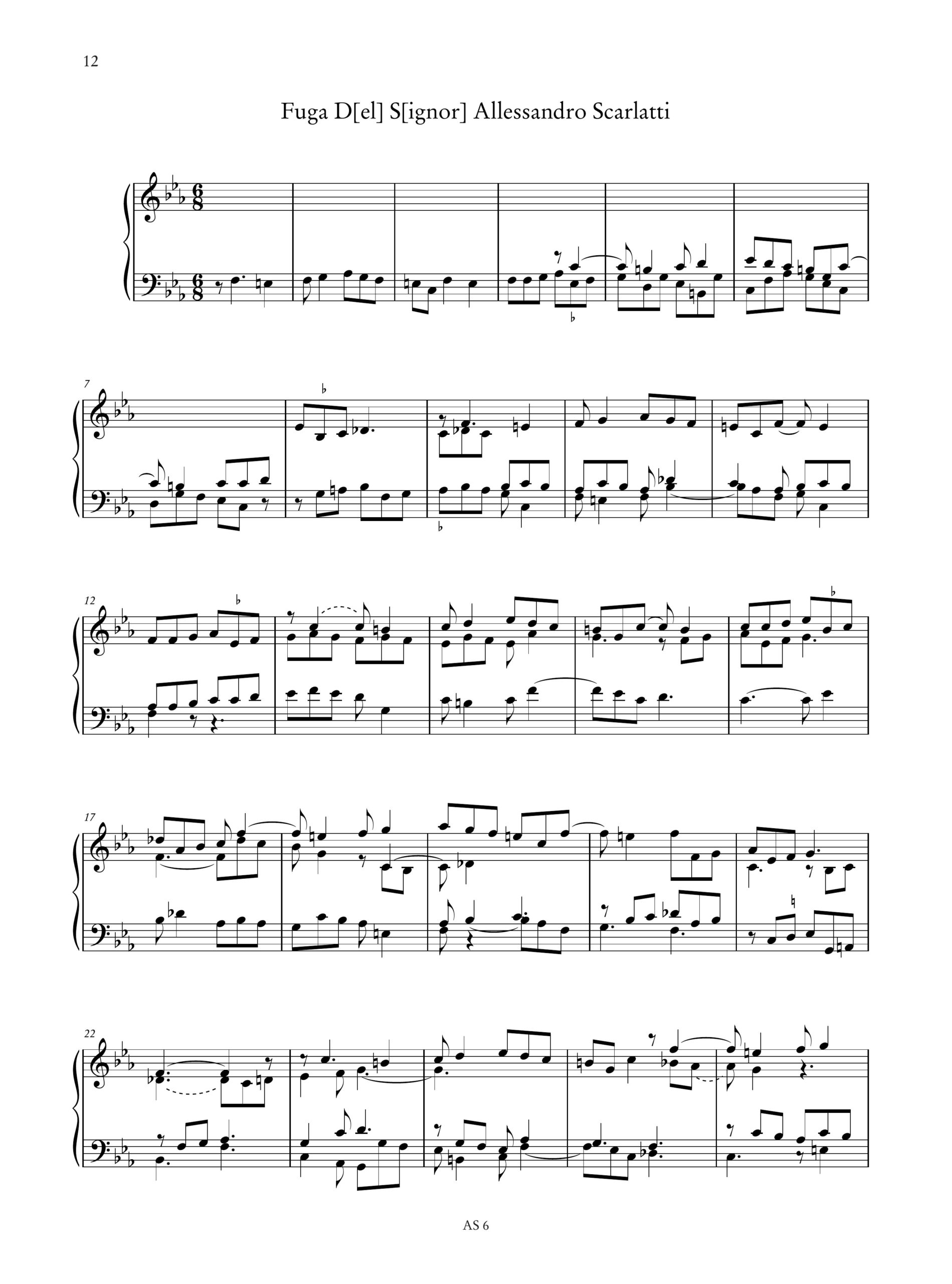 Autore: Alessandro Scarlatti (1660-1725) Curatore : Andrea Macinanti, Francesco Tasini Data pubblicazione : 18/7/2012 Collana : Alessandro Scarlatti – Opera Omnia per strumento a tastiera Pagine : pp. 268 Formato : 235×315 mm Rilegatura : Brossura (copertina morbida) ISMN : 979-0-2153-2010-9 Codice : AS 6 | Curatore: Andrea Macinanti, Francesco Tasini | Data pubblicazione: 18/7/2012