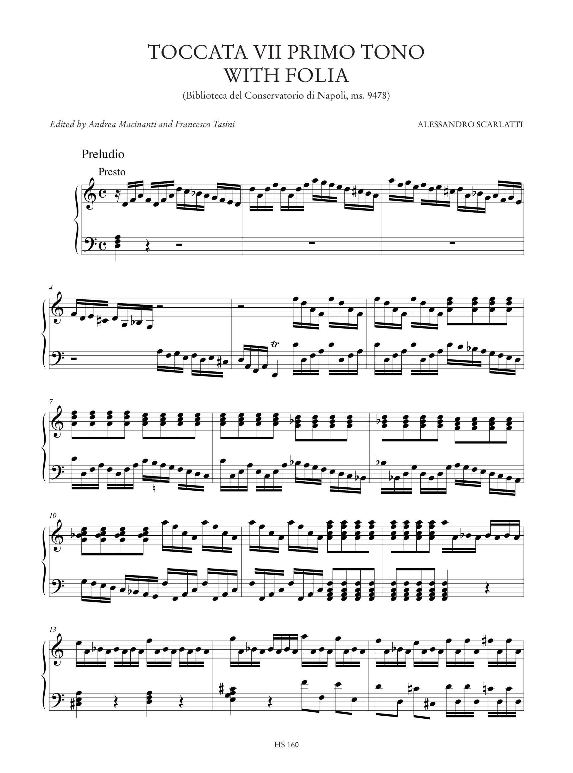 Scarlatti, Alessandro: Toccata VII Primo tono con Folia (Biblioteca del Conservatorio di Napoli ms. 9478) per Organo o Clavicembalo