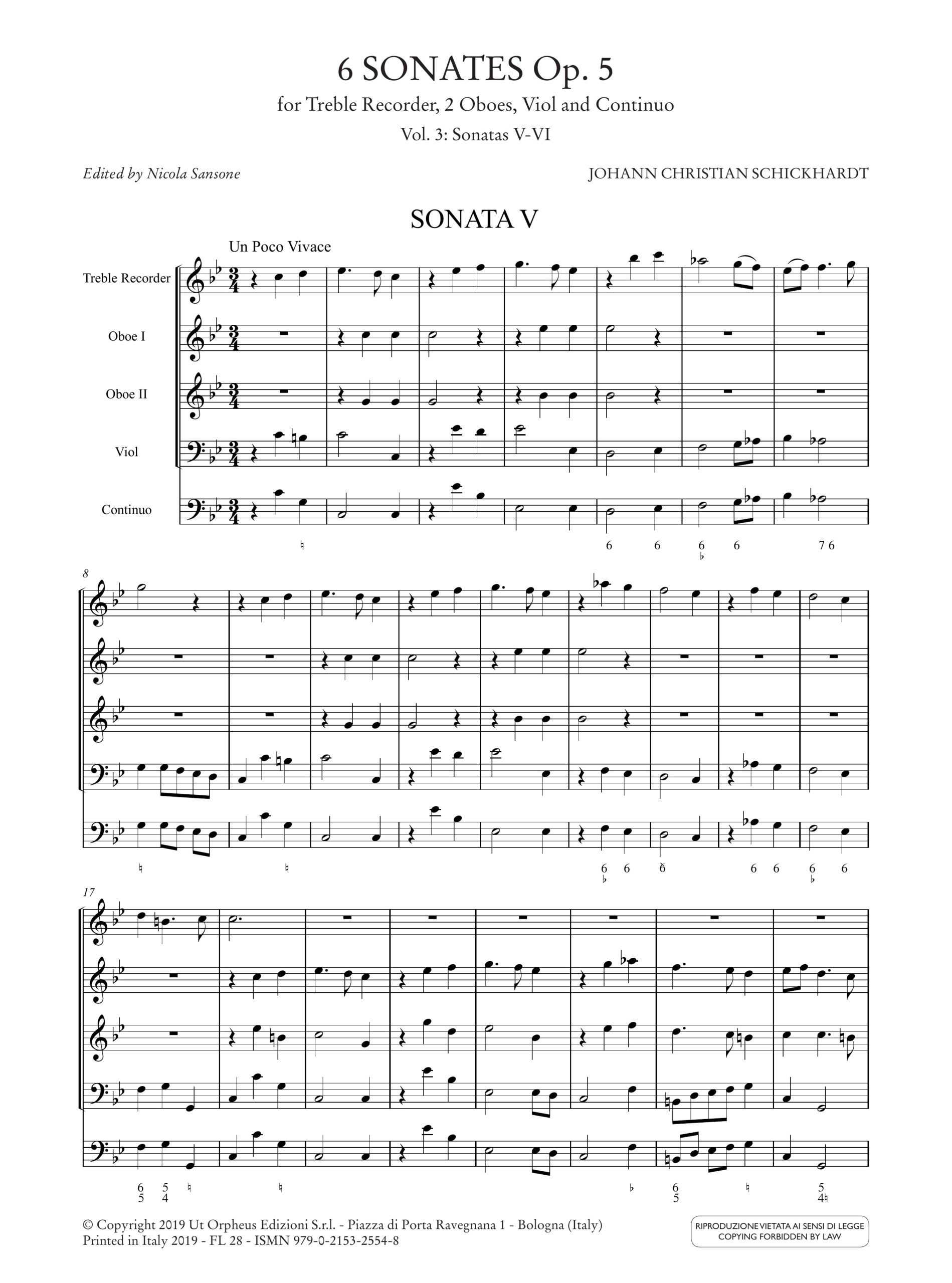 Schickhardt, Johann Christian: 6 Sonate Op. 5 per Flauto Dolce Contralto, 2 Oboi, Viola da Gamba e Basso Continuo – Vol. 3: Sonate V-VI