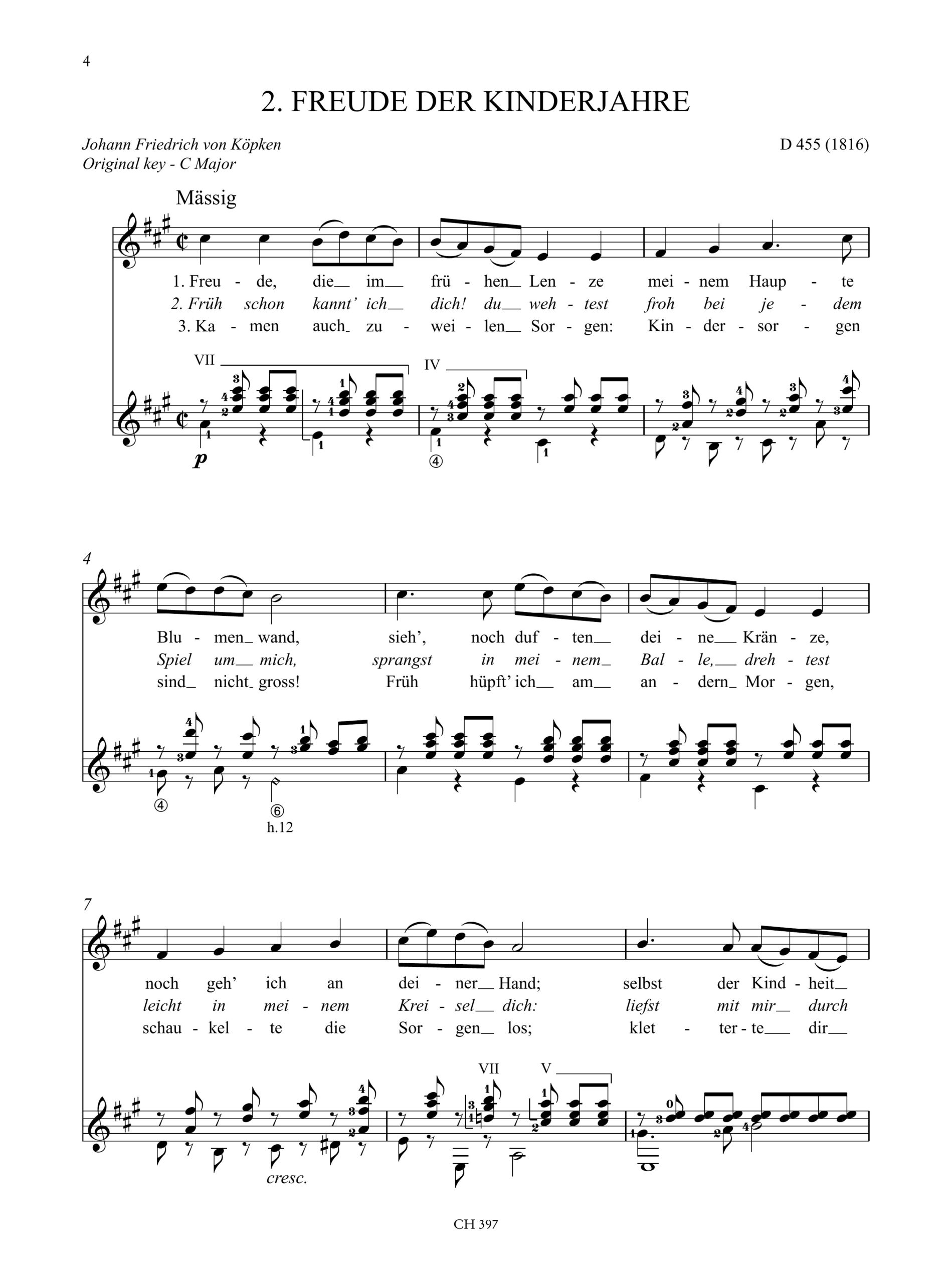 Contenuto e Descrizione: Blumenlied; Freude der Kinderjahre; Frühlingslied; Der liebliche Stern; Nachtviolen; Nähe des Geliebten; Trauer der Liebe; Die Herbstnacht (Die Wehmut); Du bist die Ruh; Tischlied