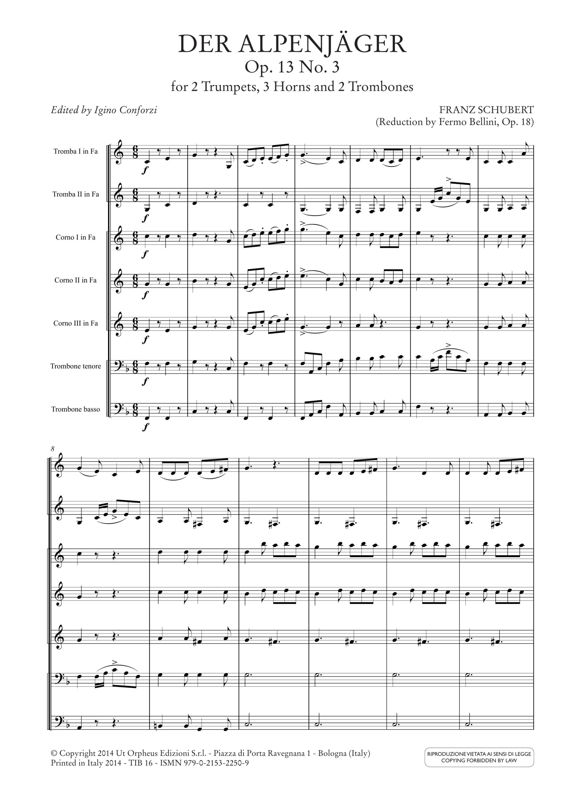 Schubert, Franz: Der Alpenjäger op. 13 n. 3 per 2 Trombe, 3 Corni e 2 Tromboni