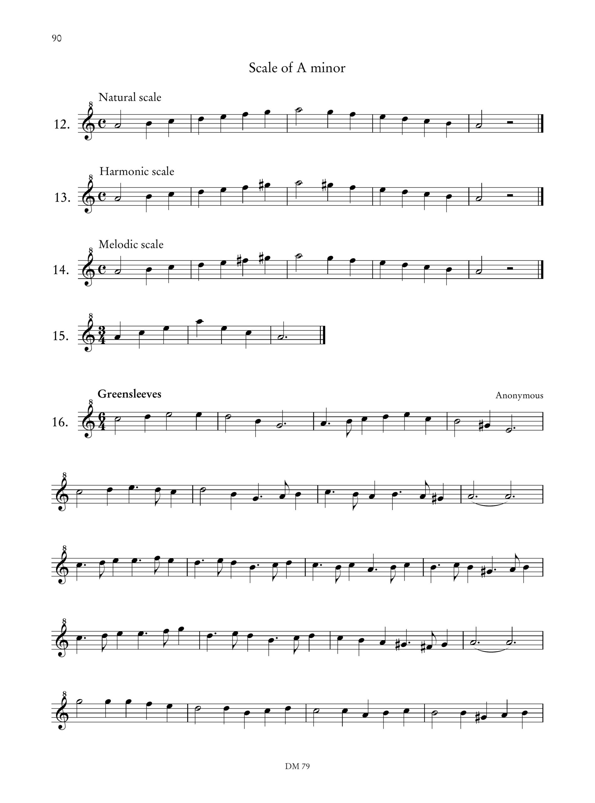 Each chapter, through progressive exercises, introduces a new note and new topics of music theory, in order to achieve a gradual mastery of the fingering of the instrument. The progression suggested for learning the fingering begins with the use of the five fingers of the left hand, then to proceed to the use of the right hand. Each topic is then examined closely by studying pieces from the traditional, Renaissance, Baroque and Classical repertoires. The scales are also introduced gradually, aiming to help the student master the fingering of the scales up to three sharps and three flats and relative minor scales.