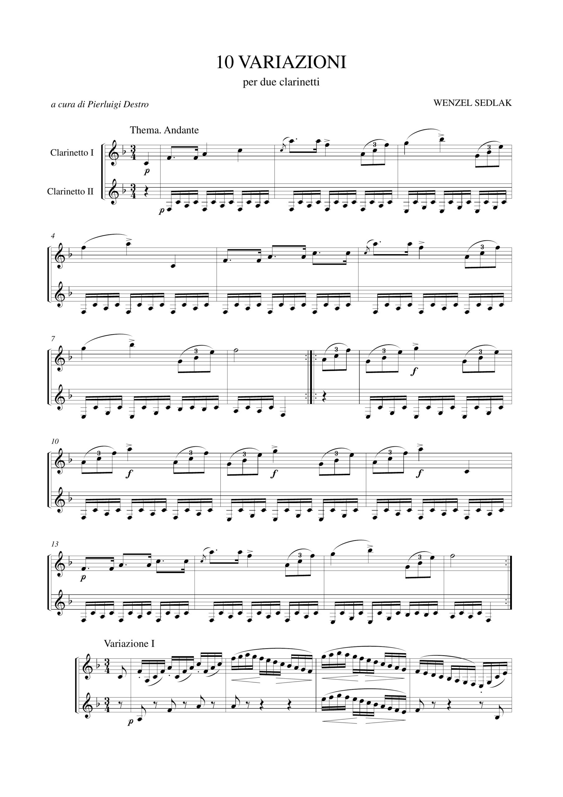 Sedlak, Wenzel: 10 Variazioni per 2 Clarinetti