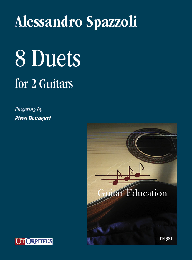 Contenuto e Descrizione: Alessandro Spazzoli (compositore non chitarrista, ma che vanta una produzione chitarristica ormai anche quantitativamente notevole ed assai differenziata) presenta qui otto nuovi Duetti che certamente vanno ad arricchire in modo originale il repertorio del duetto didattico.