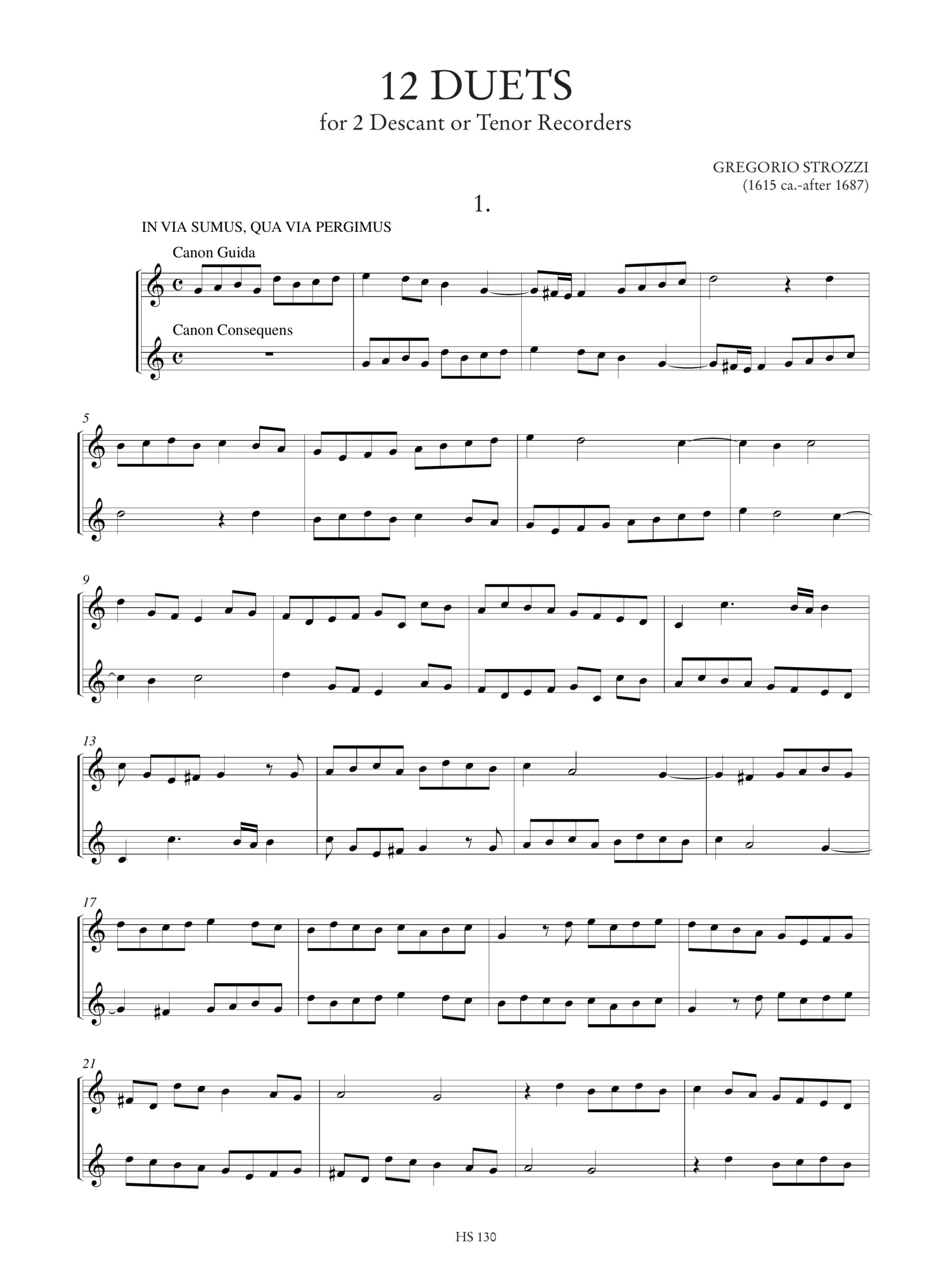 Strozzi, Gregorio: 12 Duetti per 2 Flauti Dolci Soprani o Tenori