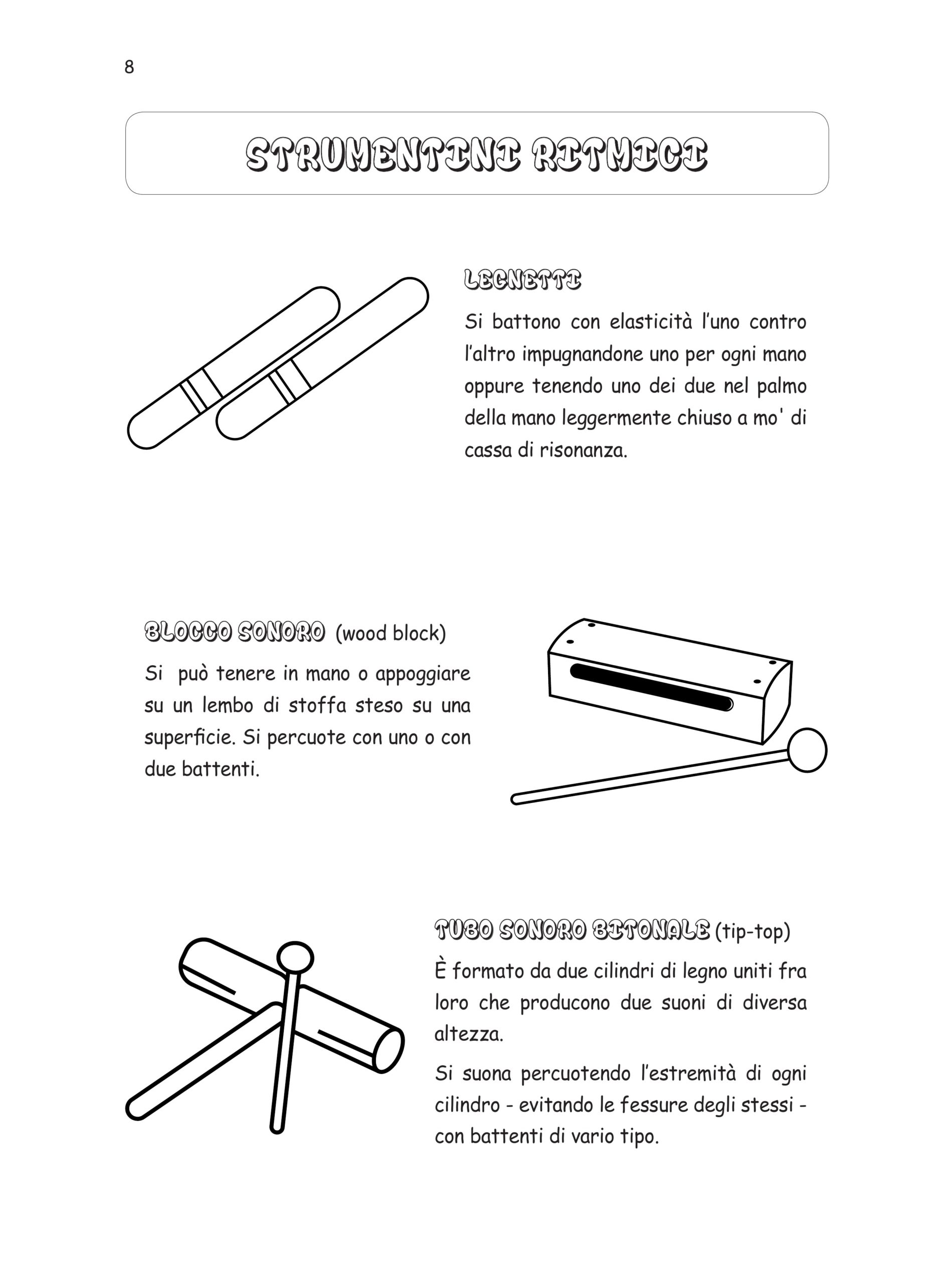 Il volume comprende anche utili pagine dedicate alla descrizione e all’uso di strumenti ritmici, divertenti “penitenze” e il