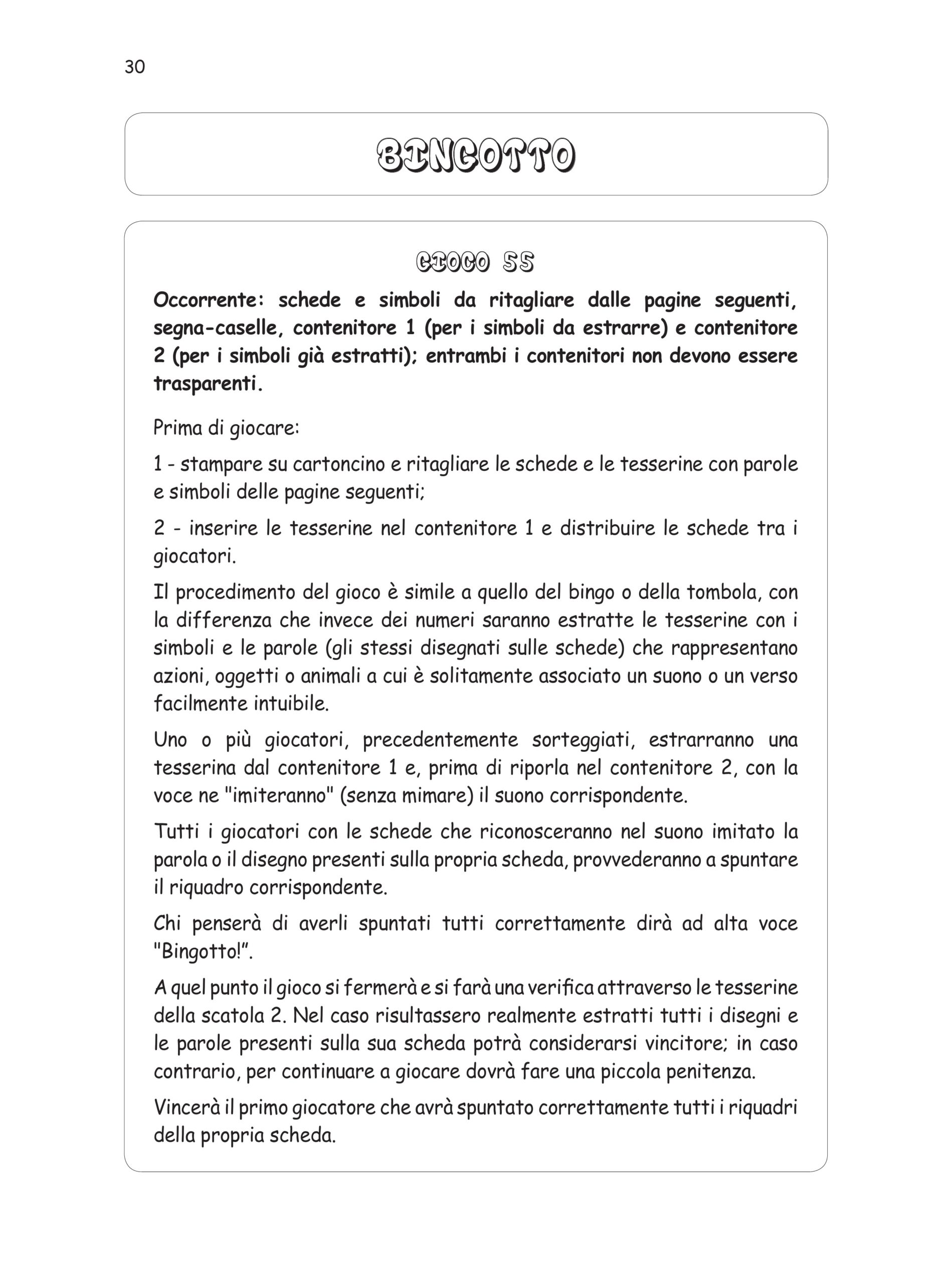 I semplici giochi contenuti nel libro, in molti casi tratti dalla tradizione popolare, necessitano di pochissimi ausili e possono essere proposti liberamente anche con eventuali varianti, in modo casuale o combinati fra loro all’interno di un vero e proprio progetto didattico, ma sempre nel rispetto dei tempi di crescita e delle caratteristiche dei bambini, in un contesto sereno, non competitivo, che permetta loro di sentirsi sicuri, liberi di usare la fantasia, di scoprire, sperimentare, improvvisare ritmi e suoni, di imparare con allegria.