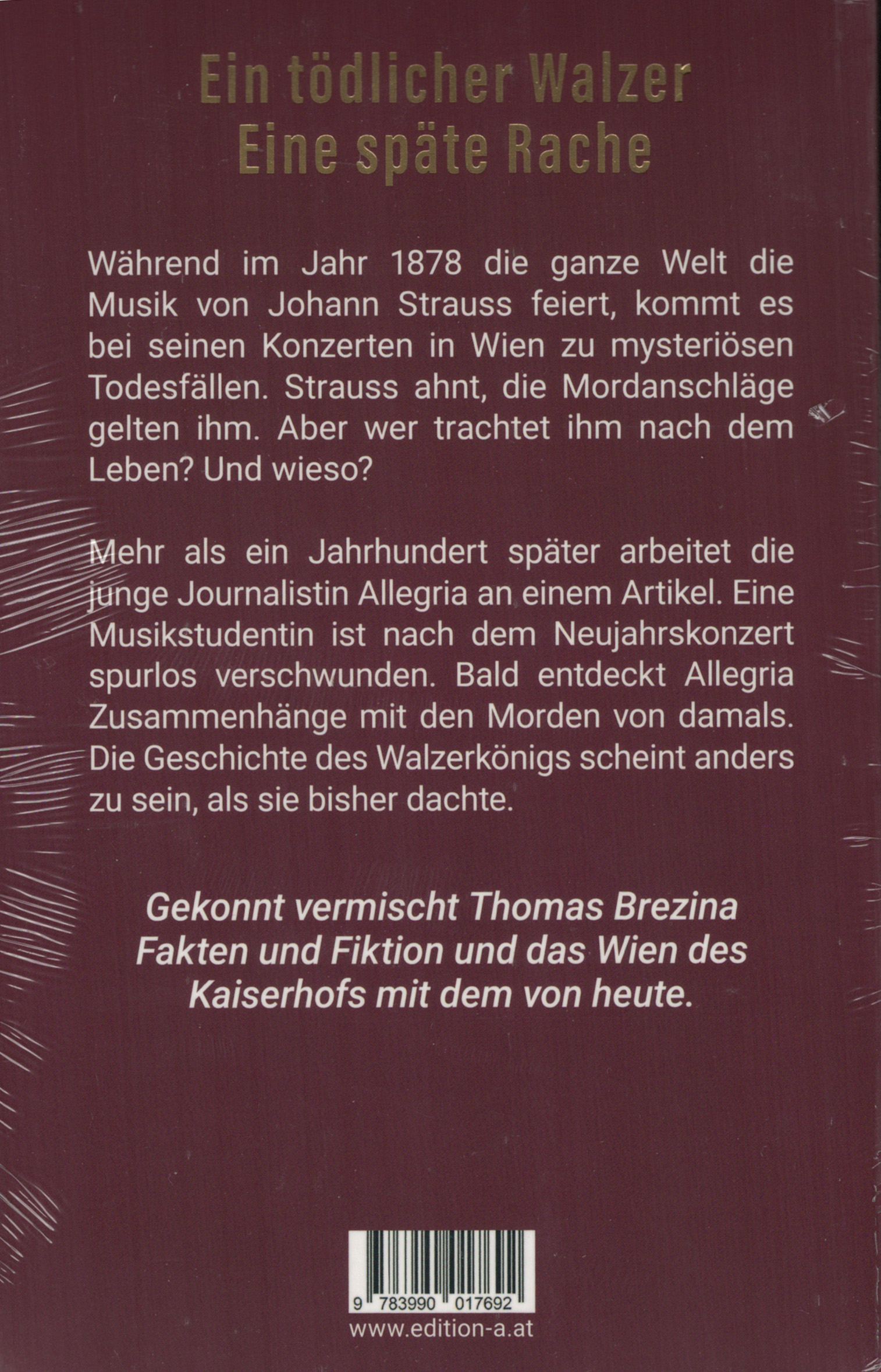 Das neue Jahr wird in Österreich traditionell mit seinem Donauwalzer begrüßt: Johann Strauss steht auf dem Olymp der klassischen Musiker neben Mozart und Beethoven. Als die Assistentin eines weltbekannten Strauss-Forschers während des Neujahrskonzerts verschwindet und später tot im Wiener Musik- verein gefunden wird, ahnt noch niemand, welche Folgen dieser Fall hat. Und dass er bis zu den Lebzeiten von Johann Strauss zurückreicht, bei dessen Walzerkonzerten die Tanzenden auf mysteriöse Weise umgekommen sind … Thomas Brezina, Spezialist für Krimis und historische Figuren, liefert mit »Aus für Strauss« eine temporeiche Geschichte über den Walzerkönig.