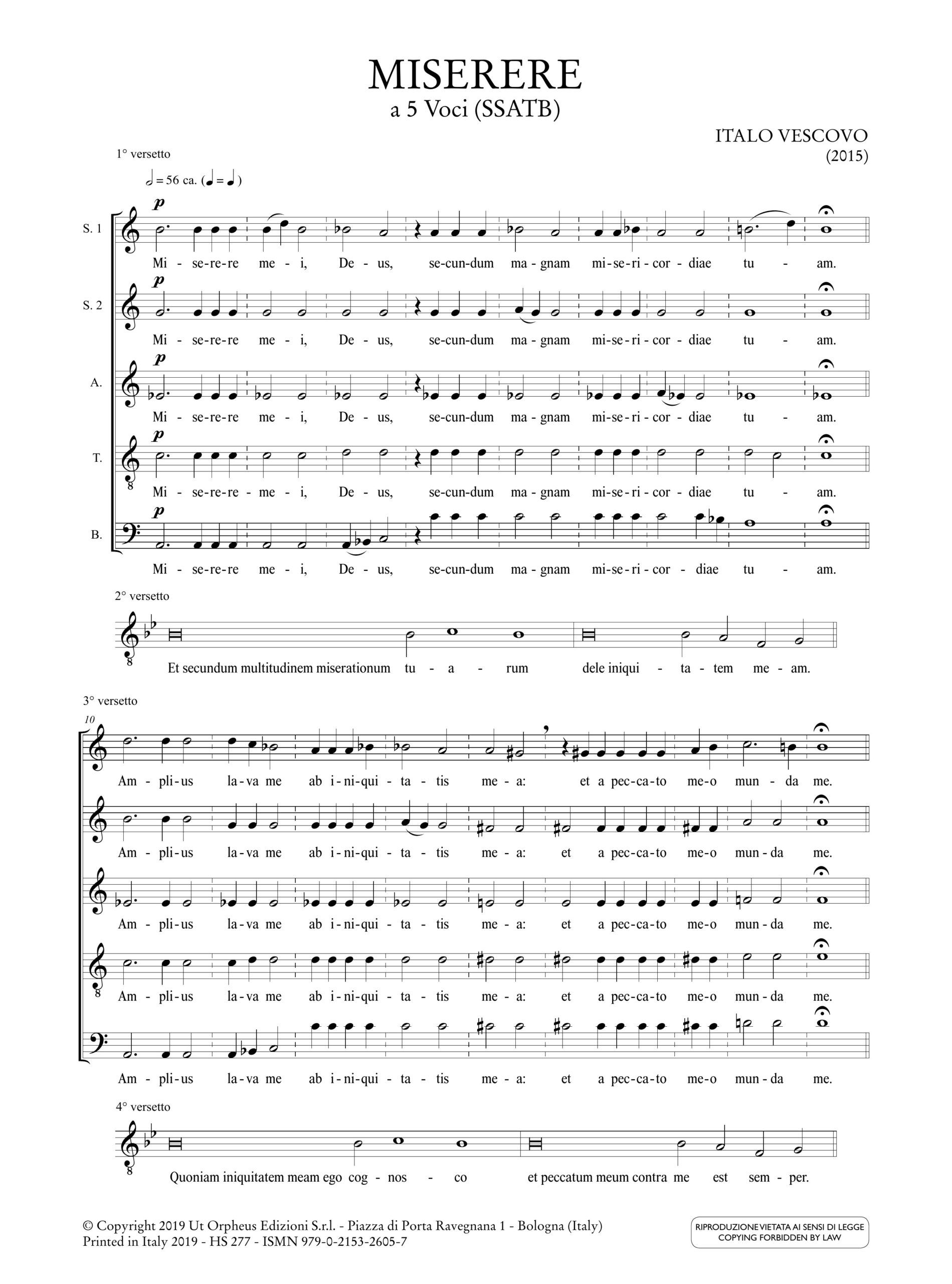 Vescovo, Italo: Miserere a 5 Voci (SSATB) (2015)