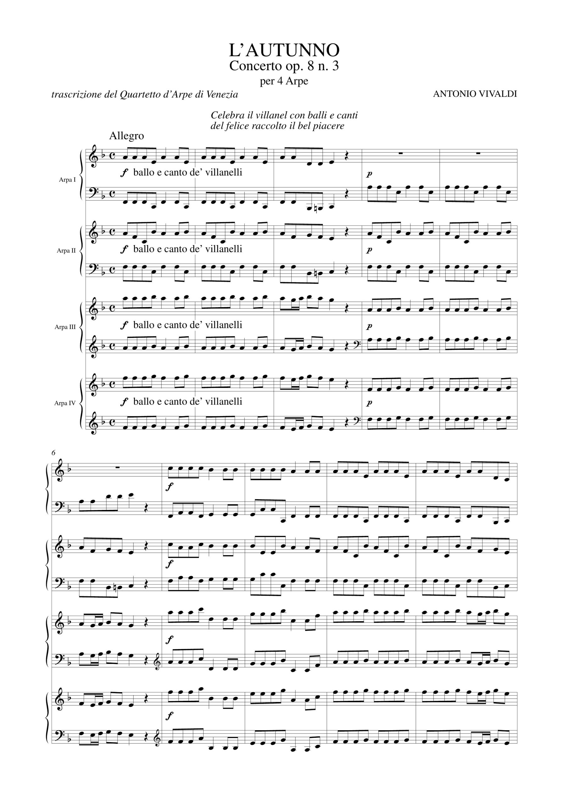 Vivaldi, Antonio: Le Quattro Stagioni per 4 Arpe – Vol. 3: L’Autunno – Concerto Op. 8 N. 3