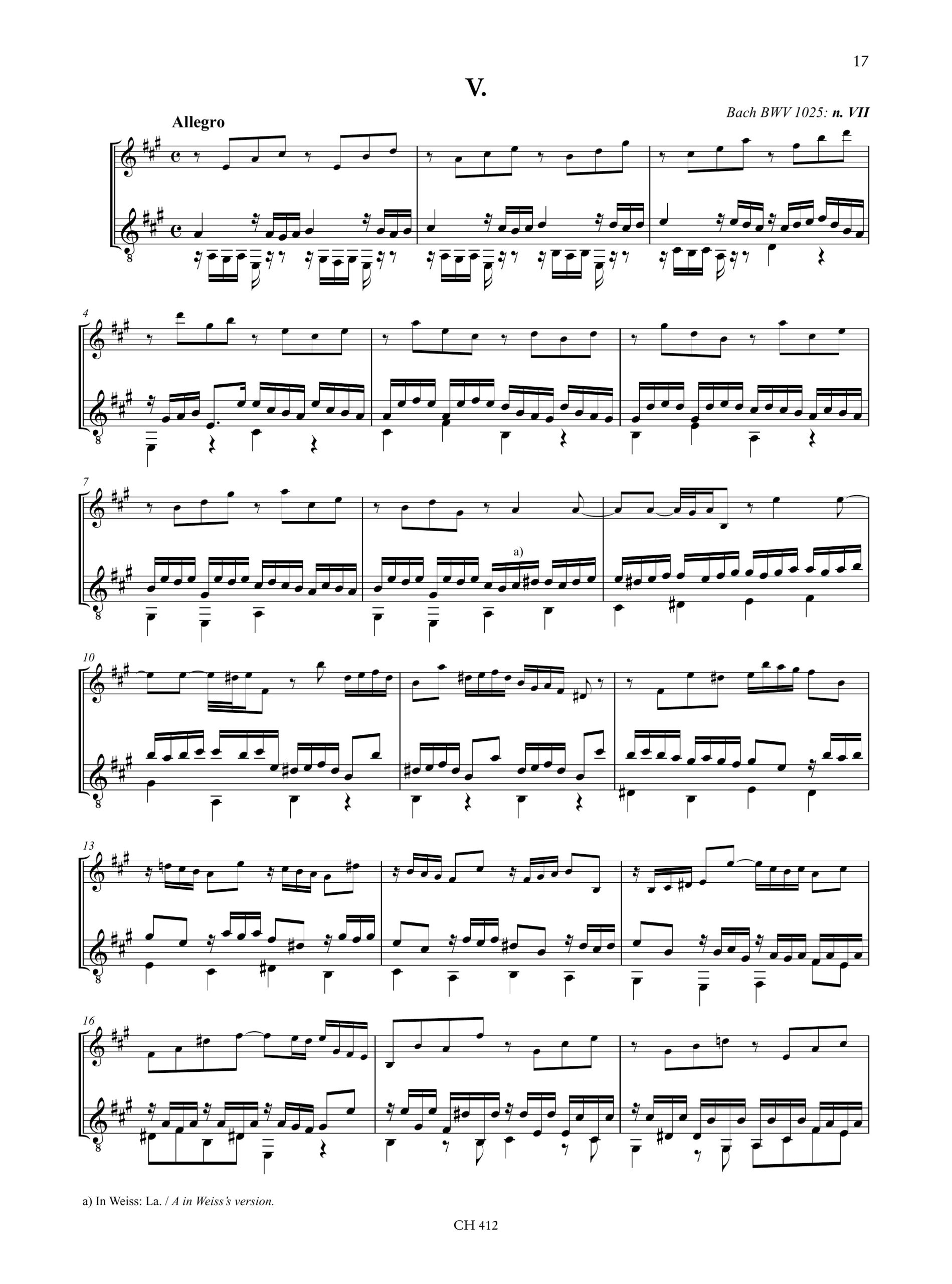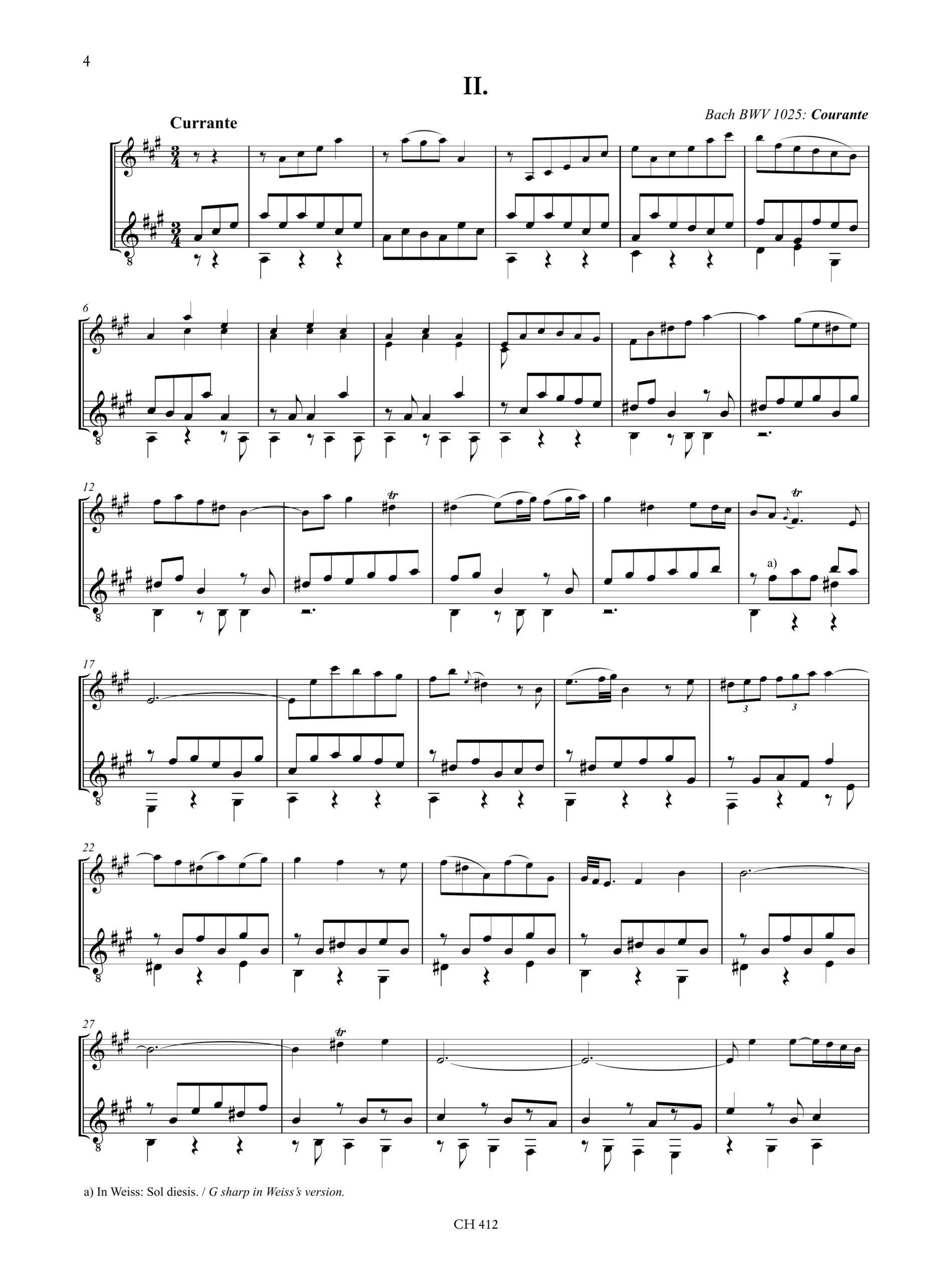 Weiss, Sylvius Leopold: Suite per Liuto in La maggiore SW 47 per Chitarra sola con accompagnamento opzionale di Violino di J.S. Bach (BWV 1025)
