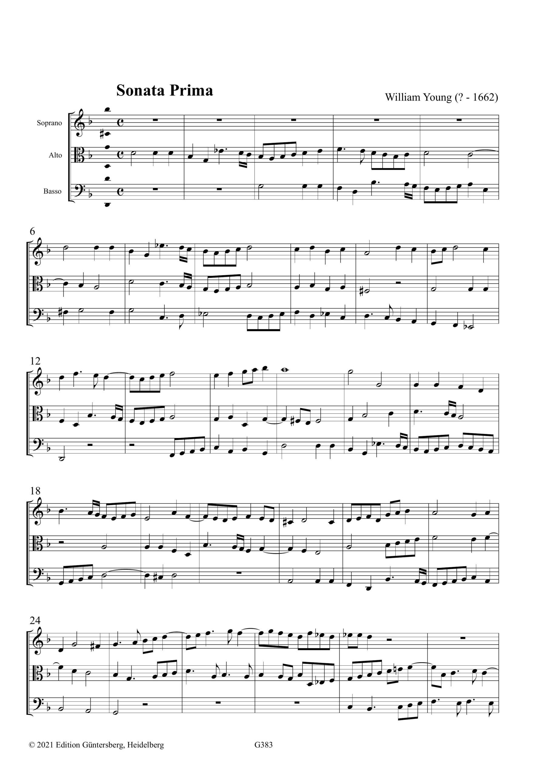 Der Engländer William Young lebte und wirkte in seiner zweiten Lebenshälfte in Innsbruck und erarbeitete sich dort einen Namen als bedeutender Komponist und als einer der besten Gambenspieler seiner Zeit. Seine dreistimmigen Sonaten repräsentieren die frühe Form der Sonata, die noch eng mit der Canzona und der Fantasia verbunden ist. In England aufgefundene Abschriften bezeichnen die Stücke deshalb auch als Fantasies. Unserer Ausgabe basiert auf dem Innsbrucker Druck von 1659, der erst in diesem Jahrhundert von Marc Strümper entdeckt wurde. Wir freuen uns, den Consortspielern diese wenig bekannten aber sehr lohnenden Sonaten anbieten zu können.